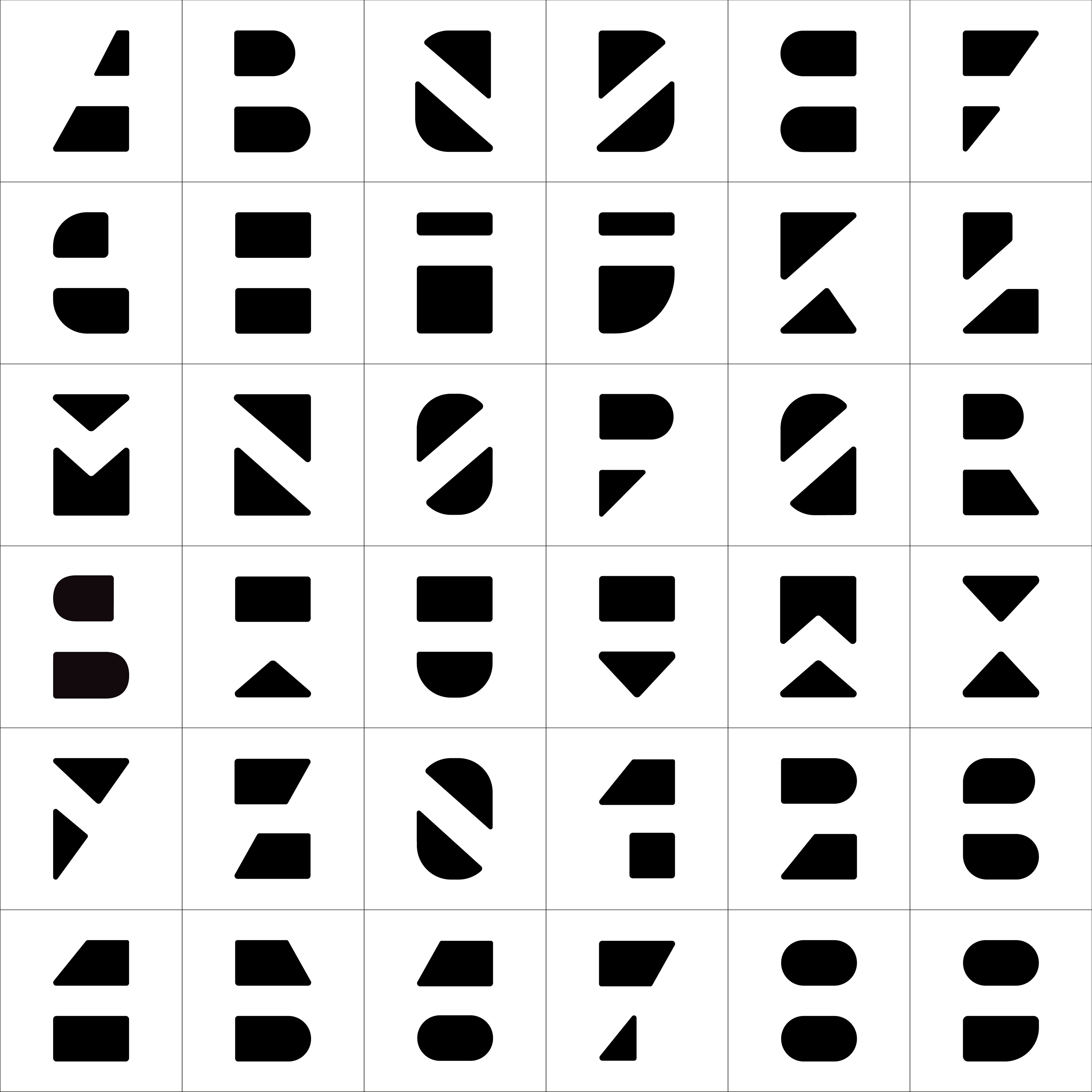 At the beginning I had 5 out of 36 letters done and dusted thanks to the logotype. For the rest of them basic assumptions were:
