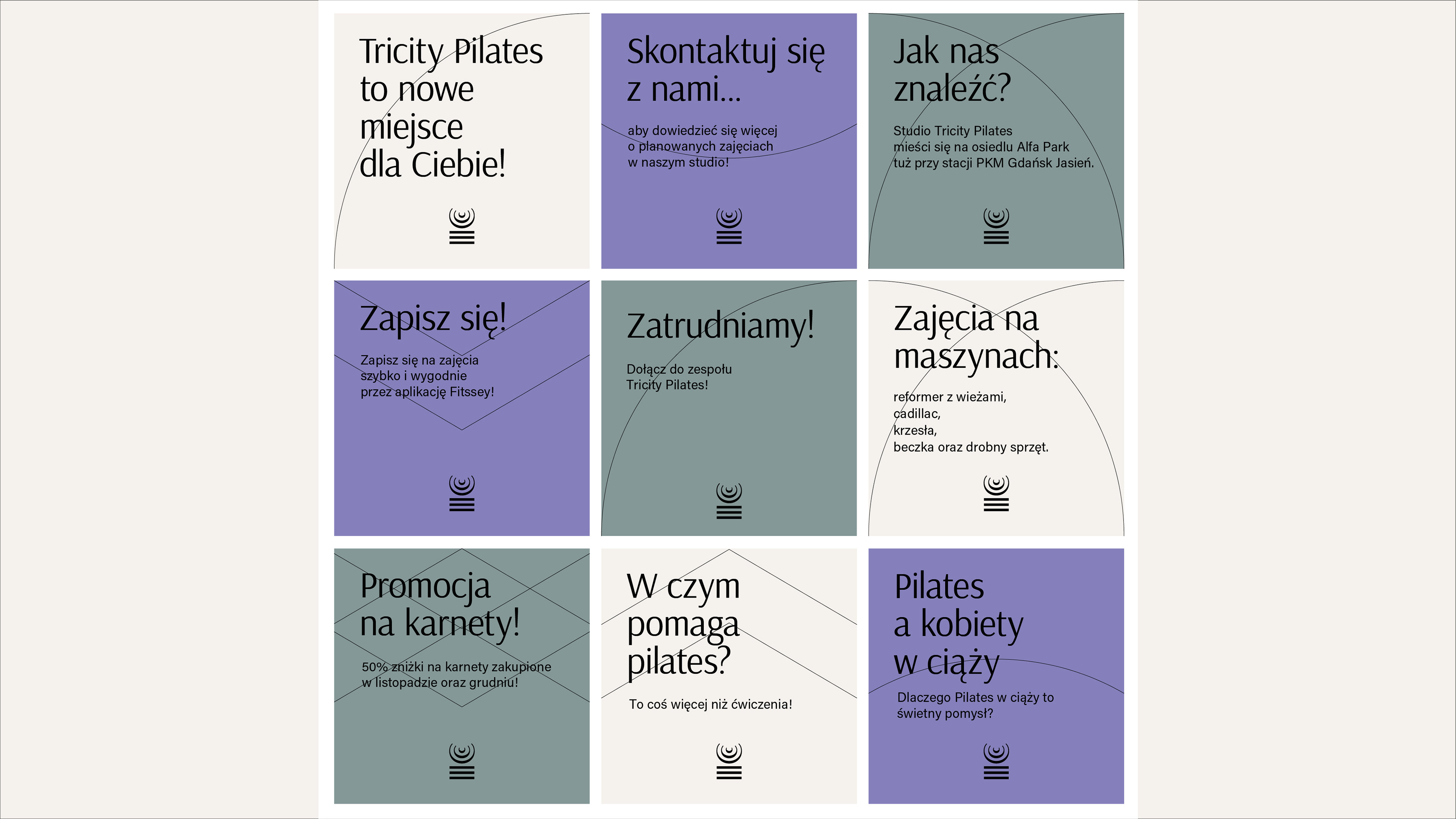 I’m triple happy because, in this project, I had the opportunity to experiment with typography - both in its writing and form - on the main logo (Tricity Pilates) and the secondary one (the event sub-brand Pilates on the Pier). Thank you to Magda, the founder of the studio, who was open to my experiments!